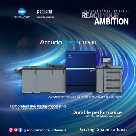 Catatan Khusus: Unit AccurioPress C10500 saat ini tersedia secara eksklusif bagi Customer Existing sebagai bentuk apresiasi dan dukungan kami untuk peningkatan kapasitas produksi mitra setia kami.